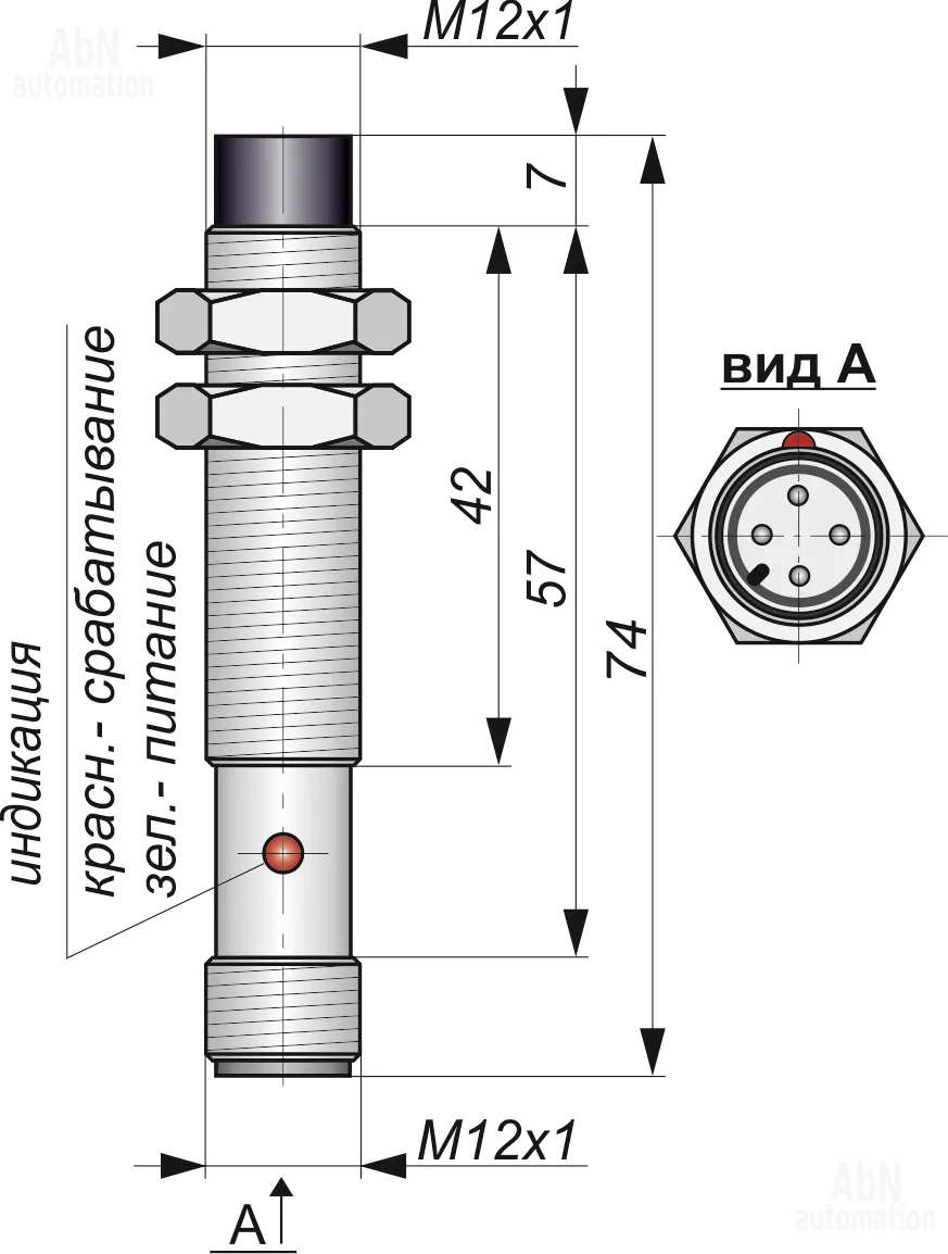 | Размер корпуса (ДхШхВ), мм | М12*1 |