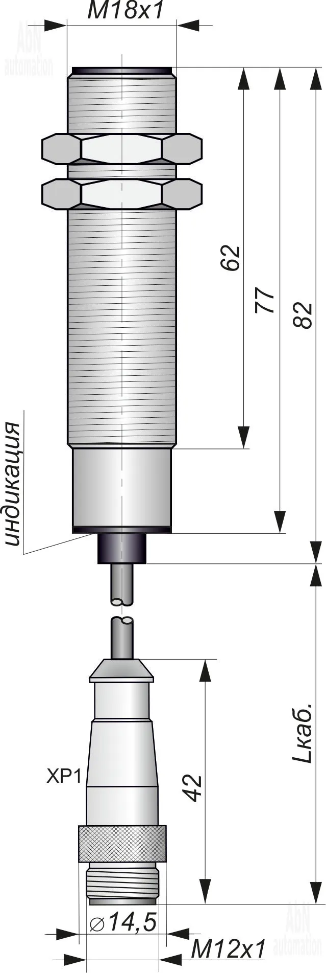 Артикул АБН: 821-ИВ09-NO-PNP-P(Л63, Lкорп=75мм, Lкаб=2м)