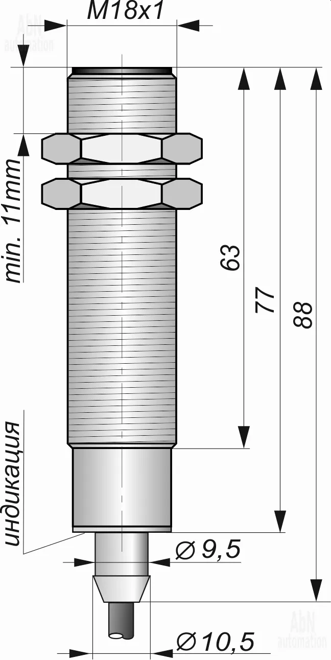 | Размер корпуса (ДхШхВ), мм | М18*1 |