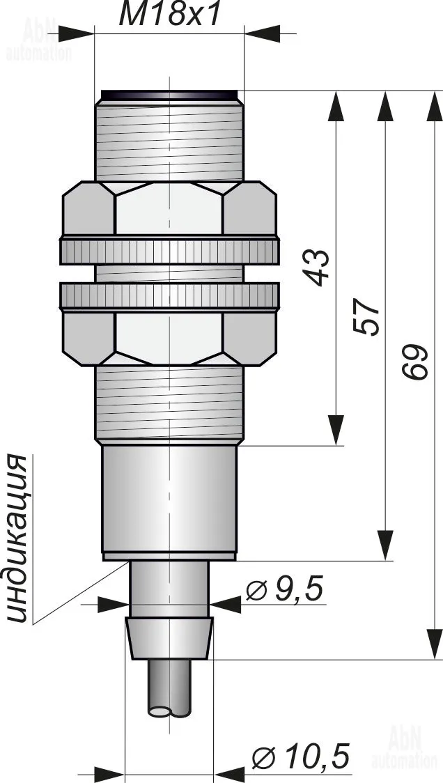 | Размер корпуса (ДхШхВ), мм | М18*1 |