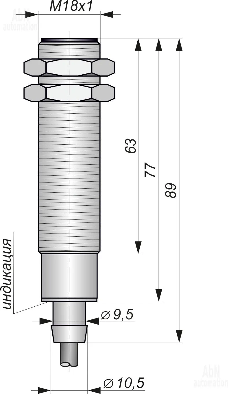 Артикул АБН: 821-ИВ10-NO/NC-PNP(Л63, Lкорп=75мм, Lкаб=2м)