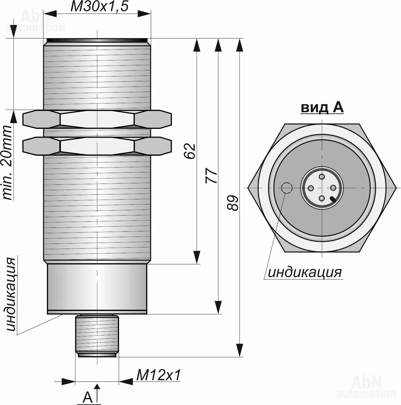 Размер корпуса (ДхШхВ), мм М30*1,5