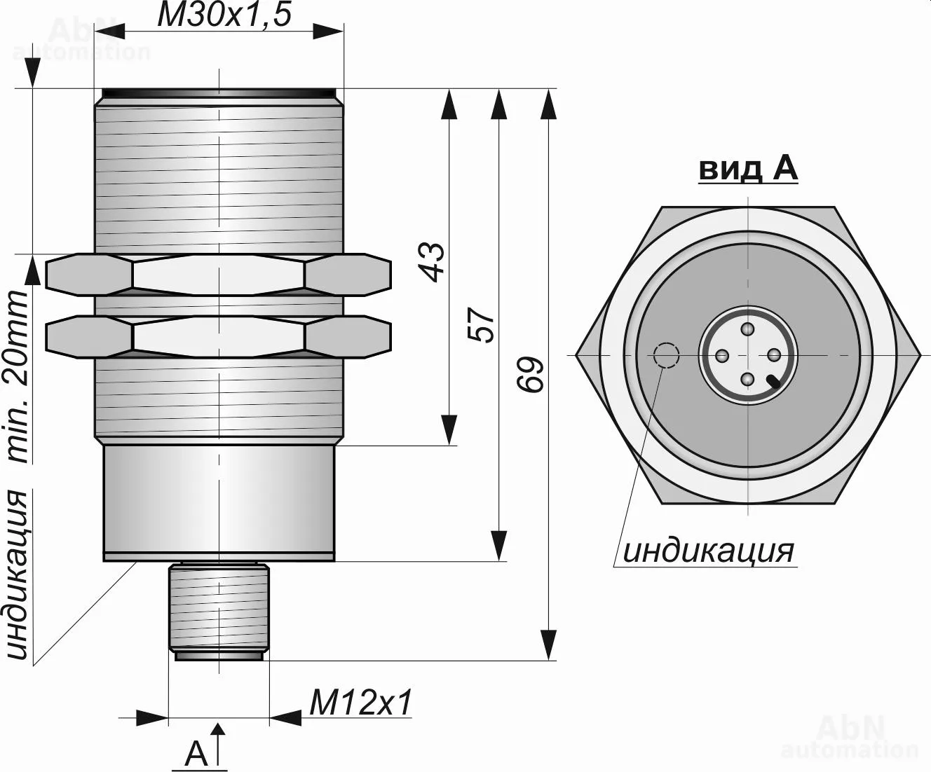 | Размер корпуса (ДхШхВ), мм | М30*1,5 |