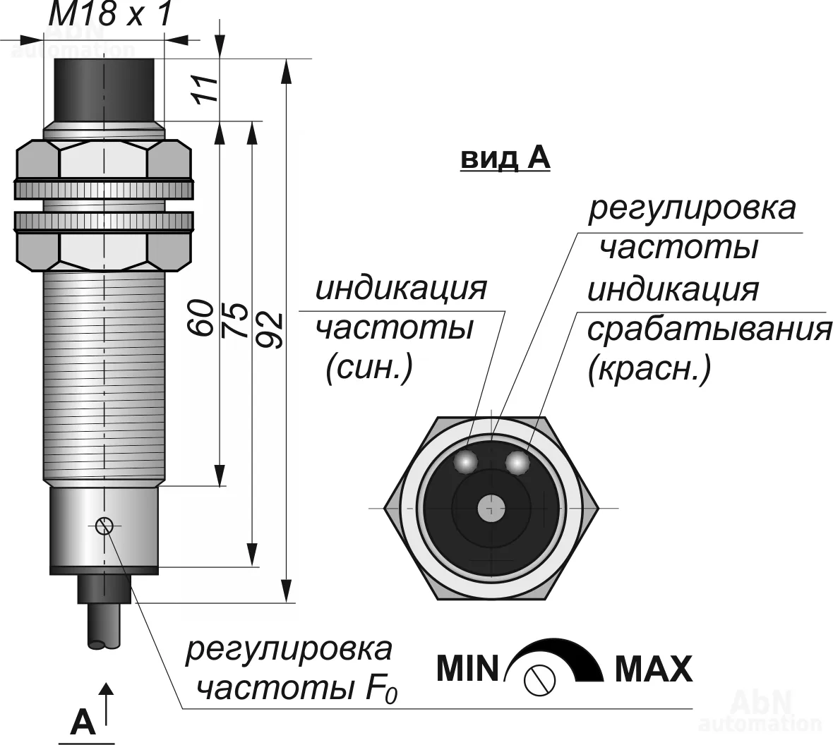 | Размер корпуса (ДхШхВ), мм | М18*1 |