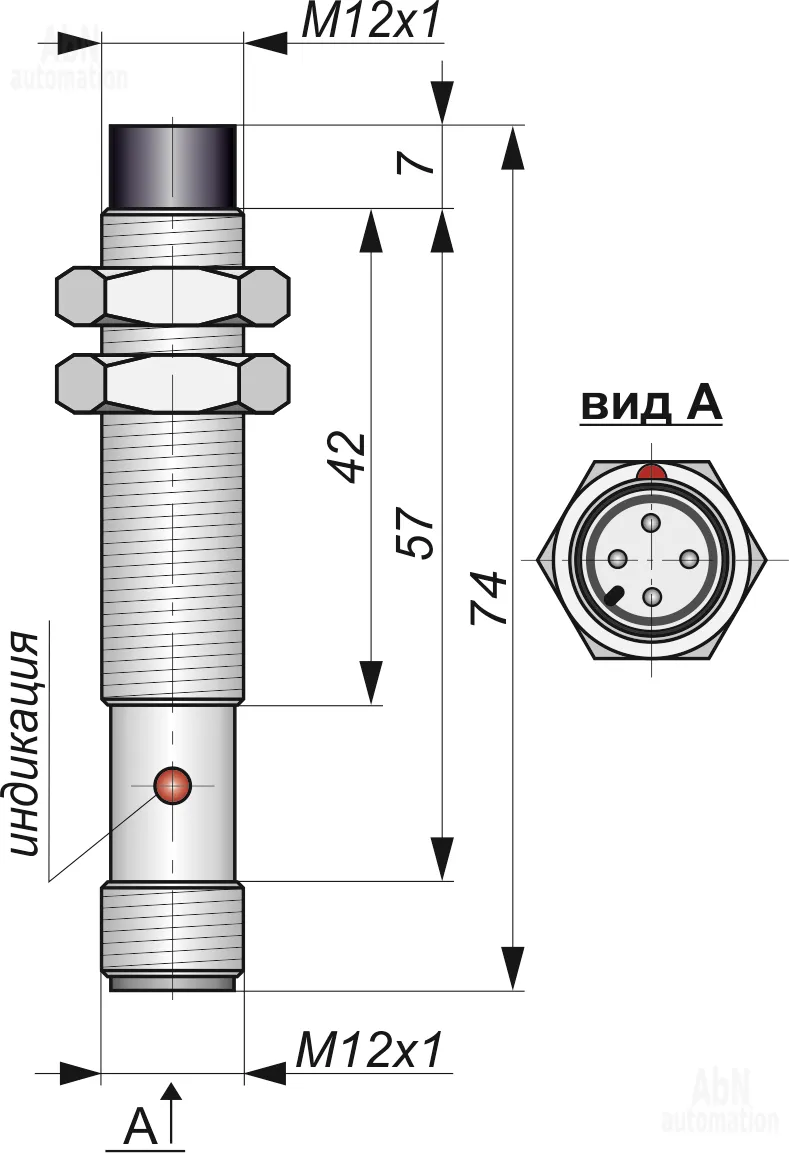 | Размер корпуса (ДхШхВ), мм | М12*1 |