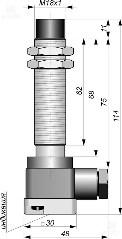 Артикул АБН: 821-И11-NO/NC-PNP-K(Л63, Lкорп=75мм)