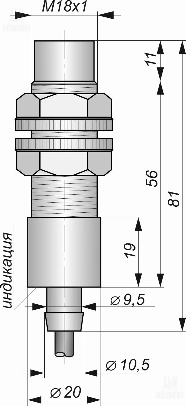 | Размер корпуса (ДхШхВ), мм | М18*1 |