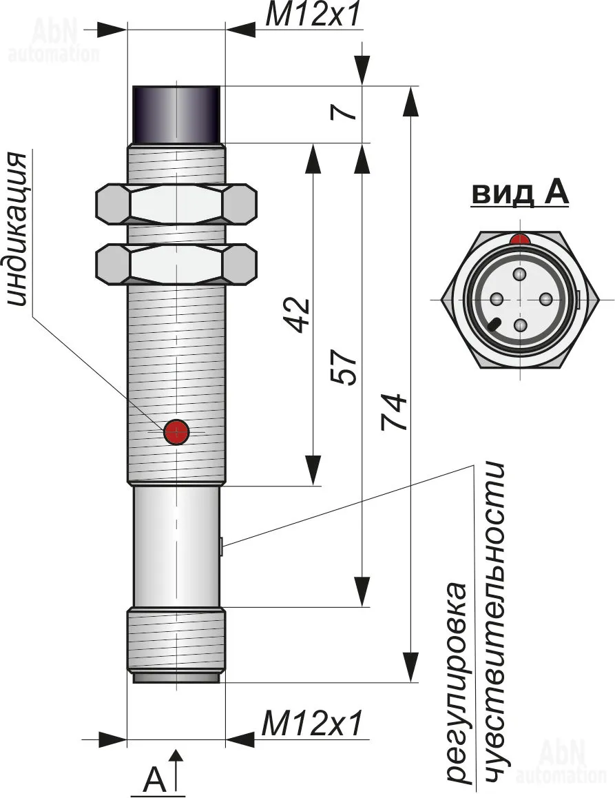 Тип: емкостной; Корпус: резьбовой; Присоединительная резьба: M12; Способ подключения: разъем; Степень защиты: IP 65; Температура эксплуатации, С: -25...75