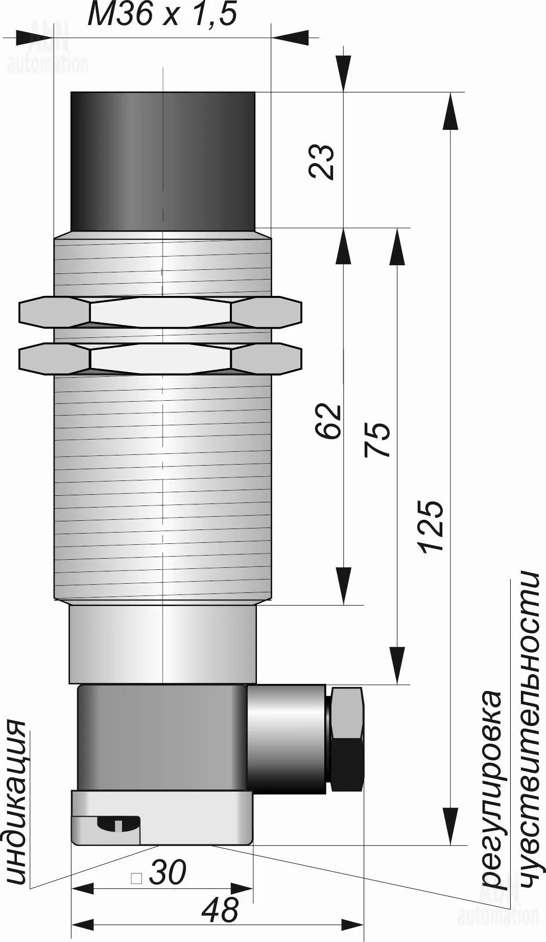 Тип: емкостной; Корпус: резьбовой; Присоединительная резьба: M36; Функция выходного сигнала: NO; Расстояние срабатывания, мм: 25; Номинальное напряжение, V: 20…250 AC / 30…250 DC; Способ подключения: клеммы; Степень защиты: IP 65; Температура эксплуатации, С: -25...75