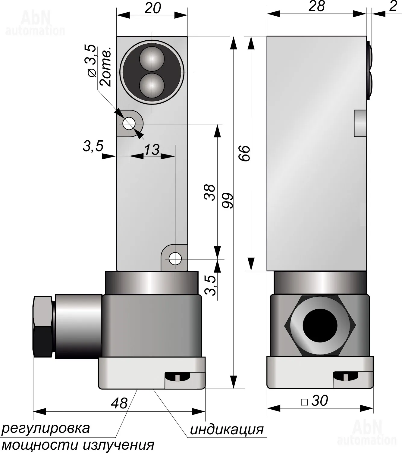Артикул АБН: 821-OC152-NO/NC-NPN-K(с регулировкой)