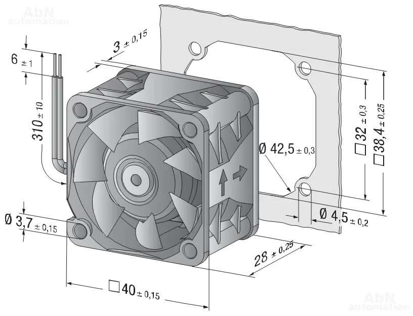 Тип: вентилятор осевой; Тип напряжения: DC; Номинальное напряжение, V: 24; Скорость, min-1: 17250; Расход воздуха m3/h: 38; Звуковая мощность, B: 6,6