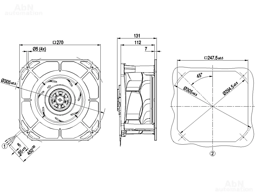 Тип: вентилятор центробежный; Количество лопастей: 7; Двигатель: M3G055-DF; Количество фаз: 1; Тип напряжения: AC; Номинальное напряжение, V: 230; Скорость, min-1: 2860; Степень защиты: IP 54; Температура эксплуатации, С: -40…80