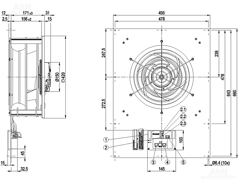 Тип: вентилятор центробежный; Количество лопастей: 6; Двигатель: M3G084-DF; Количество фаз: 1; Тип напряжения: AC; Номинальное напряжение, V: 230; Скорость, min-1: 1550; Степень защиты: IP 20; Температура эксплуатации, С: -40…80