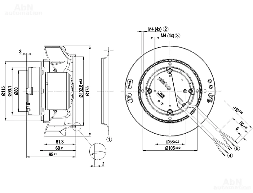 Тип: вентилятор центробежный; Количество лопастей: 7; Двигатель: M1G055-CF; Количество фаз: 1; Тип напряжения: AC; Номинальное напряжение, V: 230; Скорость, min-1: 4050; Степень защиты: IP 54; Температура эксплуатации, С: -40…80