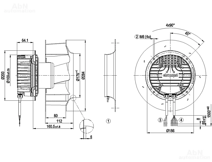 Тип: вентилятор центробежный; Количество лопастей: 7; Двигатель: M3G084-DF; Тип напряжения: DC; Номинальное напряжение, V: 110; Скорость, min-1: 3600; Степень защиты: IP 55; Температура эксплуатации, С: -40…80