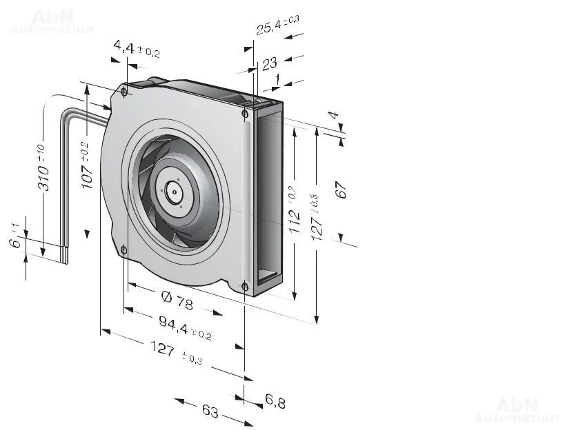 Тип: вентилятор центробежный; Тип напряжения: DC; Номинальное напряжение, V: 24; Скорость, min-1: 5100; Расход воздуха m3/h: 64; Звуковая мощность, B: 6,4