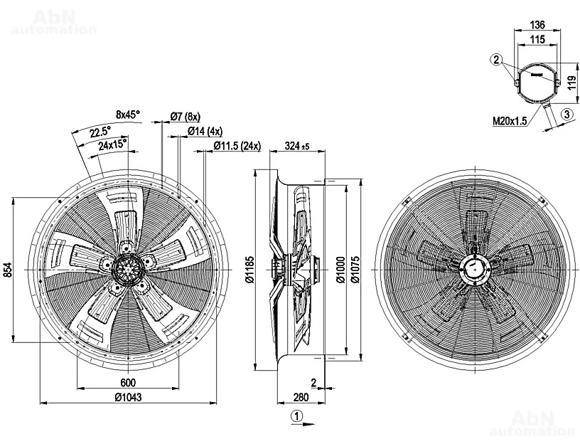 Тип: вентилятор осевой; Количество лопастей: 5; Двигатель: M8D138-LA; Количество фаз: 3; Тип напряжения: AC; Номинальное напряжение, V: 230/277/400/480; Скорость, min-1: 670/780/670/780; Степень защиты: IP 55; Температура эксплуатации, С: -40…80
