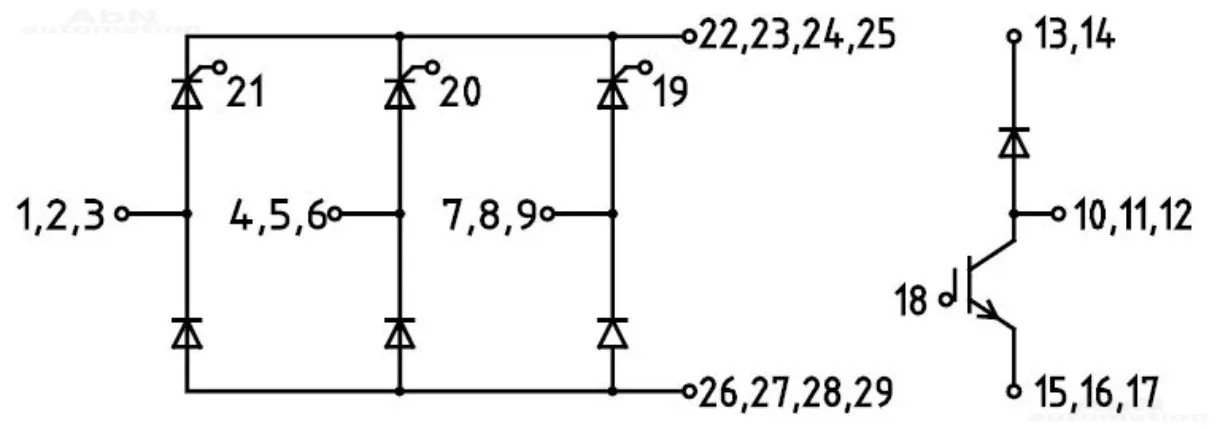 Тип: модуль мостовой; Напряжение, V: 2200; Ток, A: 150; Топология: 3-Bridge; Особенности: Half Controlled Bridges