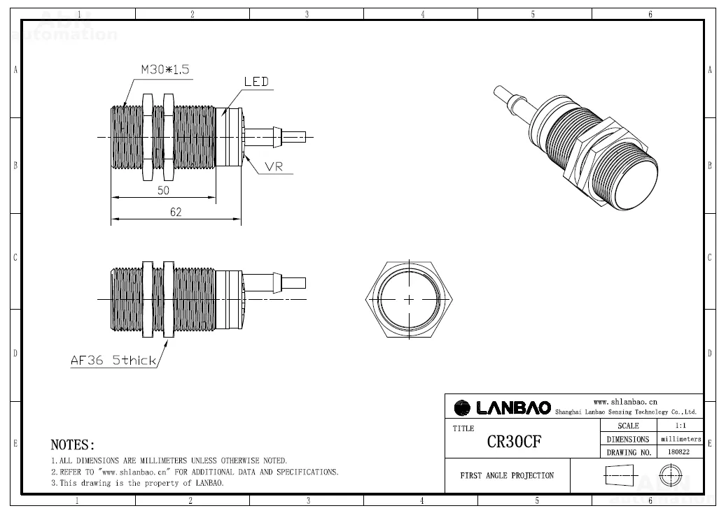 | Размер корпуса (ДхШхВ), мм | M30*1,5*62 |