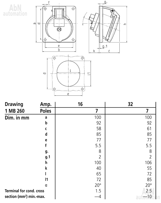 Тип: розетка панельная; Тип напряжения: AC; Напряжение, V: 500; Количество полюсов: 7; Полюса: 6p+PE; Положение заземляющего контакта, ч: 7; Степень защиты: IP44; Способ подключения: клеммы; Тип клемм: винтовые