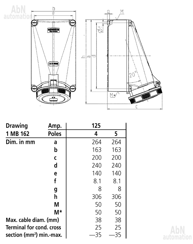 Тип: розетка настенная; Тип напряжения: AC; Напряжение, V: 400; Количество полюсов: 5; Полюса: 3p+N+PE; Положение заземляющего контакта, ч: 6; Степень защиты: IP67; Способ подключения: клеммы; Тип клемм: винтовые