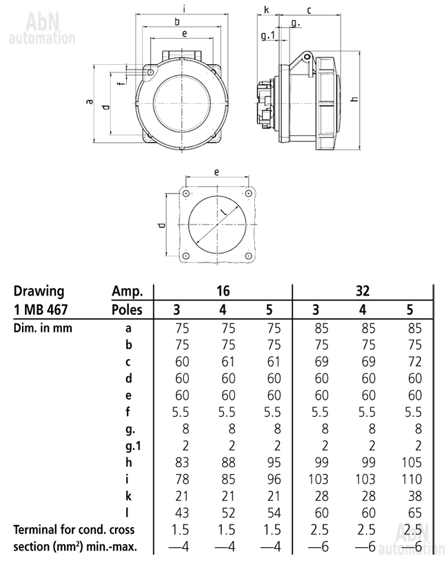 Тип: розетка панельная; Тип напряжения: AC; Напряжение, V: 500; Количество полюсов: 4; Полюса: 3P+PE; Положение заземляющего контакта, ч: 7; Степень защиты: IP67; Способ подключения: клеммы; Тип клемм: TwinCONTACT