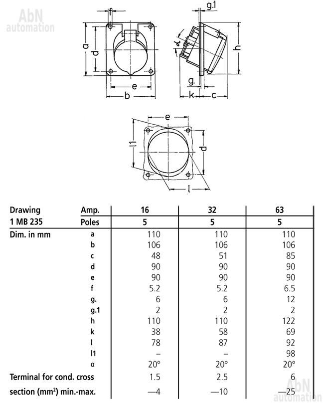 | Полюса | 3p+N+PE |