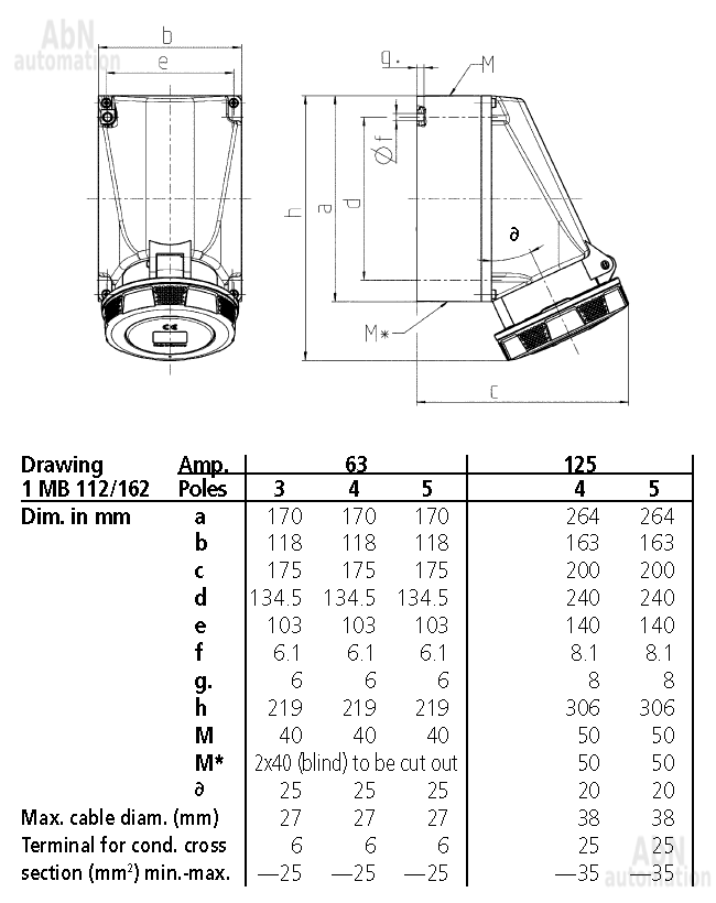 Тип: розетка настенная; Тип напряжения: AC; Напряжение, V: 400; Количество полюсов: 5; Полюса: 3p+N+PE; Положение заземляющего контакта, ч: 6; Степень защиты: IP67; Способ подключения: клеммы; Тип клемм: винтовые