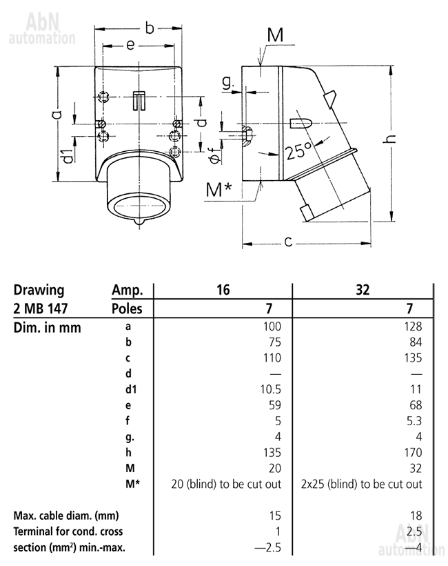 Тип: вилка настенная; Тип напряжения: AC; Напряжение, V: 400; Количество полюсов: 7; Полюса: 6p+PE; Положение заземляющего контакта, ч: 6; Степень защиты: IP44; Способ подключения: клеммы; Тип клемм: винтовые