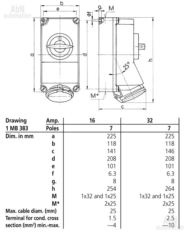 Тип: розетка настенная; Тип напряжения: AC; Напряжение, V: 400; Количество полюсов: 7; Полюса: 6p+PE; Положение заземляющего контакта, ч: 6; Степень защиты: IP44; Способ подключения: клеммы; Тип клемм: винтовые