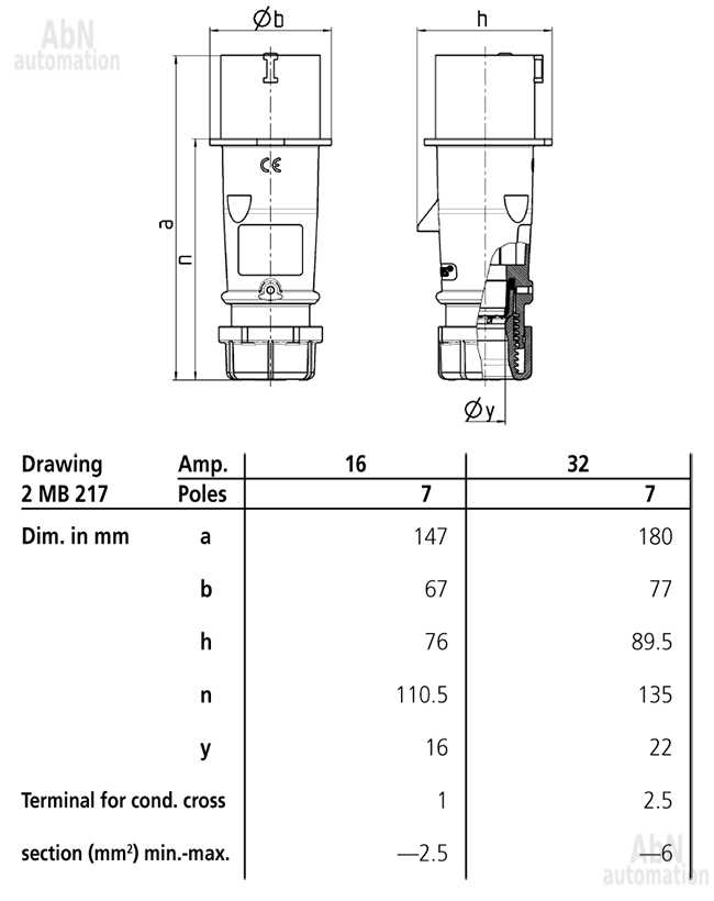 Тип: вилка кабельная; Тип напряжения: AC; Напряжение, V: 230; Количество полюсов: 7; Полюса: 6p+PE; Положение заземляющего контакта, ч: 9; Степень защиты: IP44; Способ подключения: клеммы; Тип клемм: винтовые