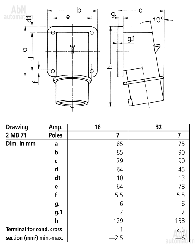 Тип: вилка панельная; Тип напряжения: AC; Напряжение, V: 230; Количество полюсов: 7; Полюса: 6p+PE; Положение заземляющего контакта, ч: 9; Степень защиты: IP44; Способ подключения: клеммы; Тип клемм: винтовые
