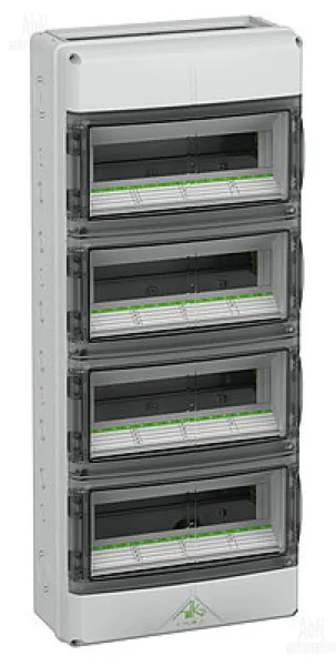 Тип: щит модульный; Монтаж: накладной; Материал корпуса: PC (поликарбонат); Количество модулей: 56; Степень защиты: IP65; Температура эксплуатации, С: -35…80