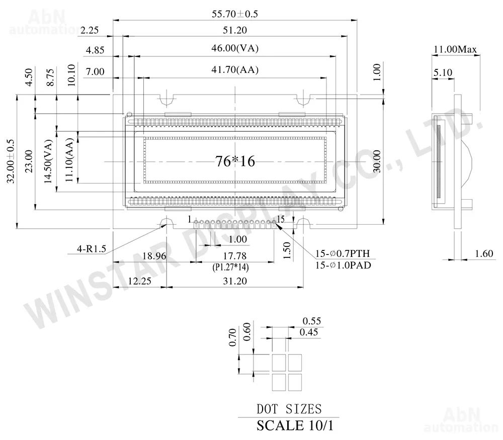 Тип: дисплей; Разрешение дисплея, px: 76*16; Тип дисплея: OLED; Температура эксплуатации, С: -40…80