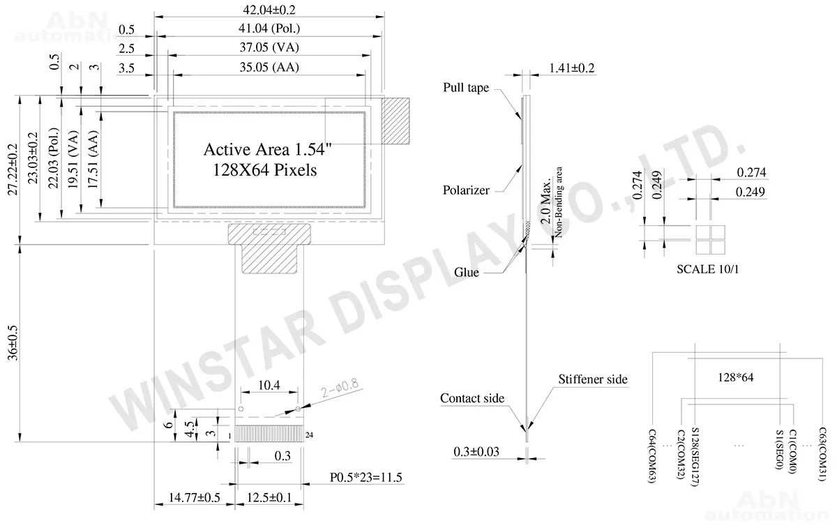Тип: дисплей; Разрешение дисплея, px: 128*64; Тип дисплея: OLED; Температура эксплуатации, С: -40…80