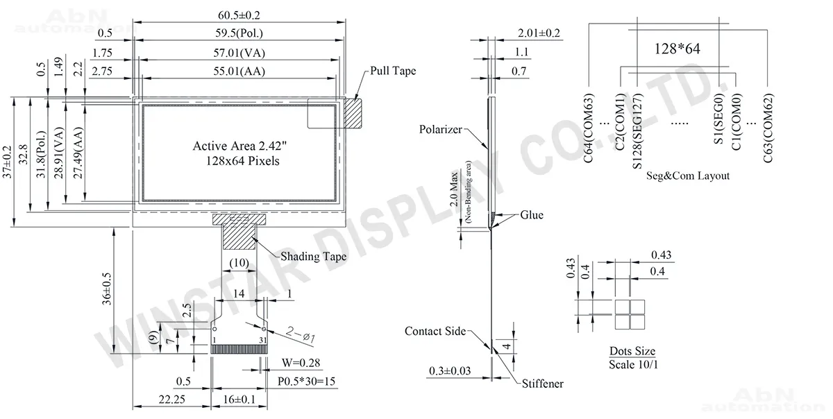 Тип: дисплей; Разрешение дисплея, px: 128*64; Тип дисплея: OLED; Температура эксплуатации, С: -40…80