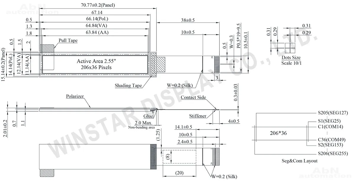 Тип: дисплей; Разрешение дисплея, px: 206*36; Тип дисплея: OLED; Температура эксплуатации, С: -40…80