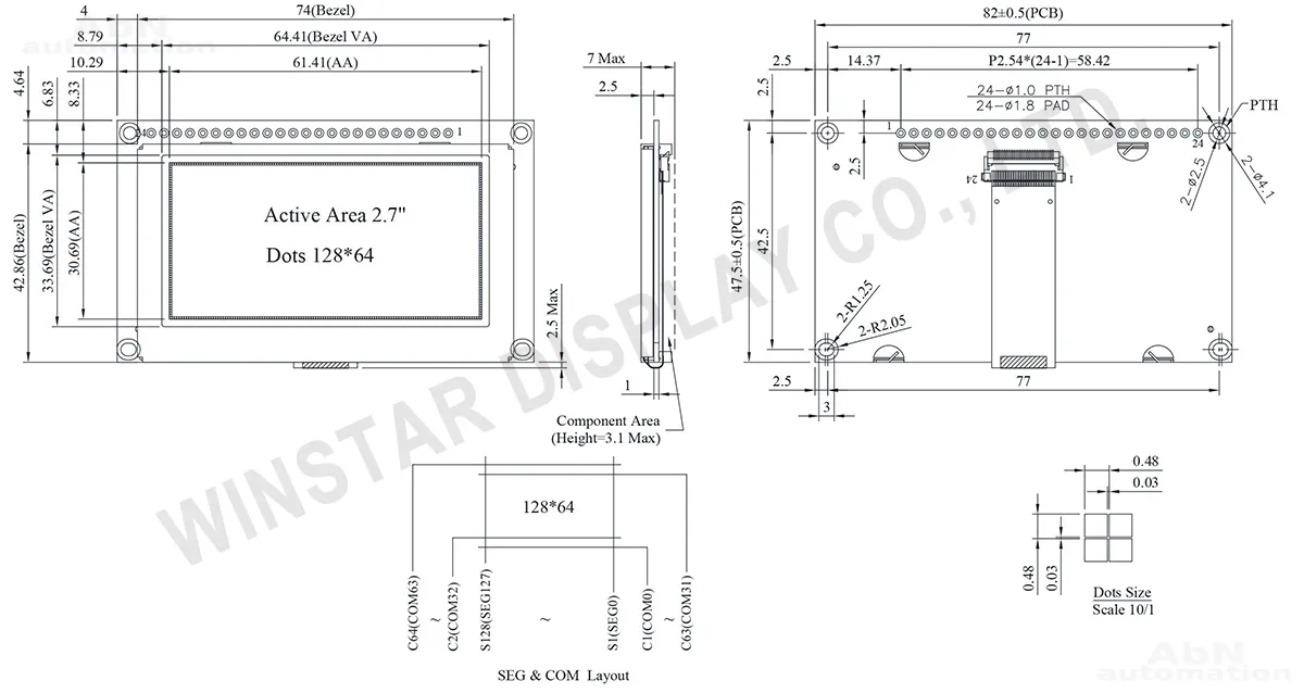 Тип: дисплей; Разрешение дисплея, px: 128*64; Тип дисплея: OLED; Температура эксплуатации, С: -40…80