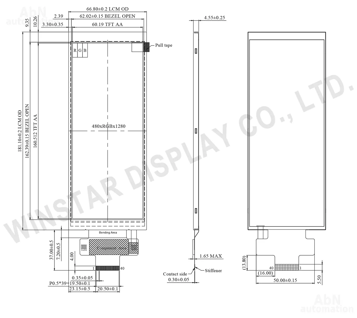 Тип: дисплей; Разрешение дисплея, px: 480*1280; Тип дисплея: TFT; Температура эксплуатации, С: -20…70