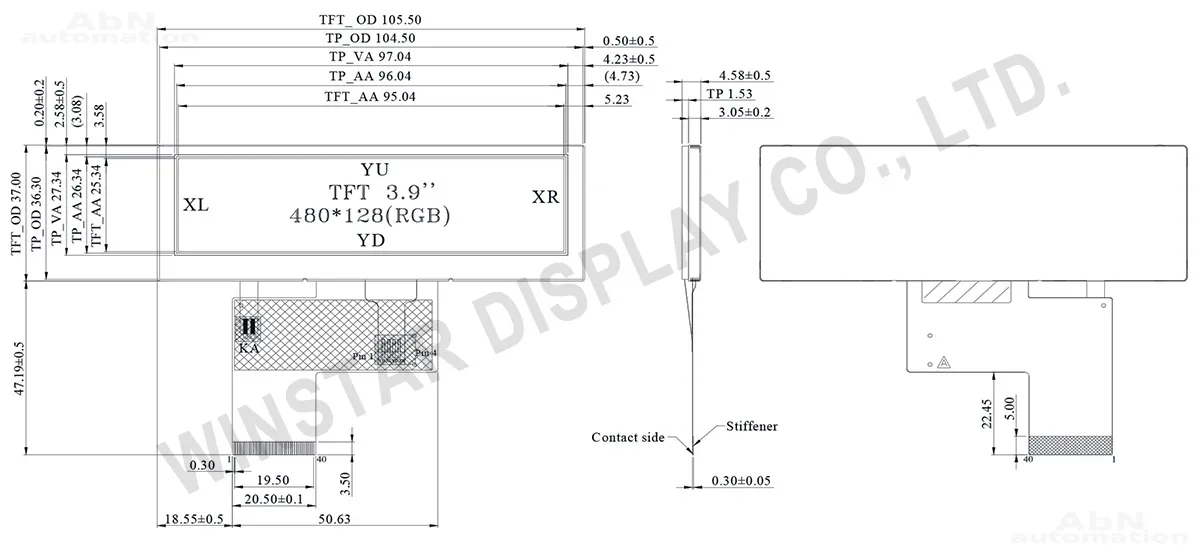 Тип: дисплей; Разрешение дисплея, px: 480*128; Тип дисплея: TFT; Температура эксплуатации, С: -20…70; Покрытие поверхности: антибликовое
