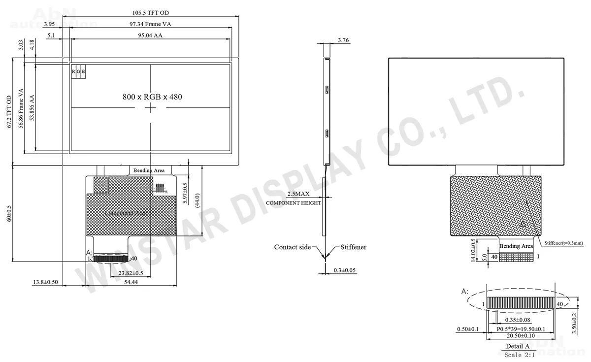 Тип: дисплей; Разрешение дисплея, px: 800*480; Тип дисплея: TFT; Температура эксплуатации, С: -30…80; Покрытие поверхности: глянцевое