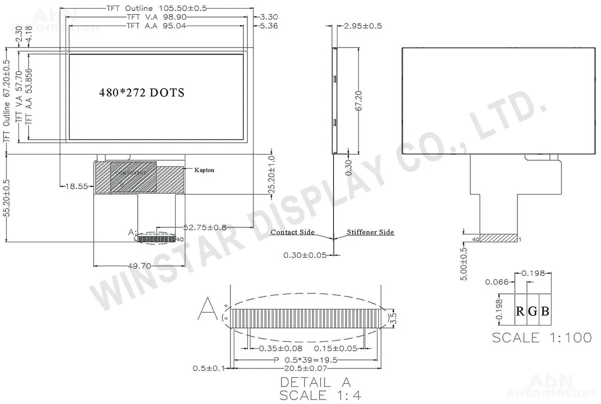 Тип: дисплей; Разрешение дисплея, px: 480*272; Тип дисплея: TFT; Температура эксплуатации, С: -20…70; Покрытие поверхности: антибликовое