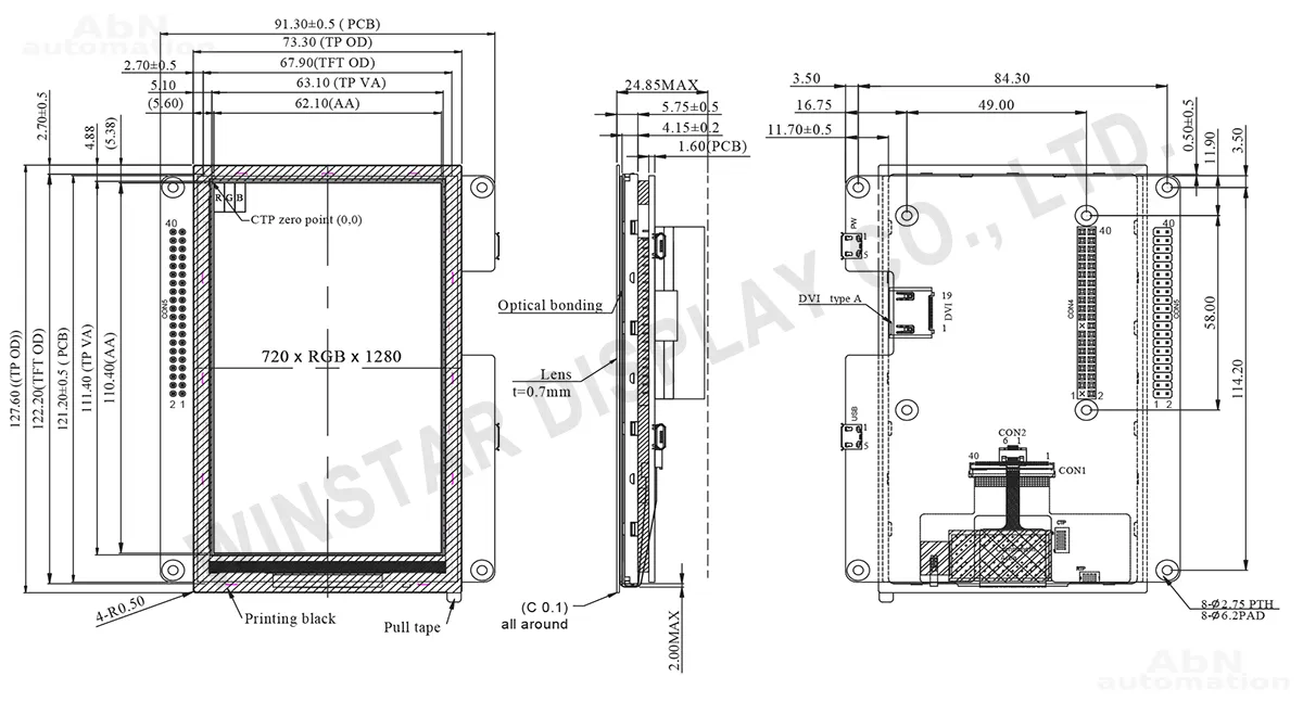 Тип: дисплей; Разрешение дисплея, px: 720*1280; Тип дисплея: TFT; Температура эксплуатации, С: -20…70; Покрытие поверхности: глянцевое