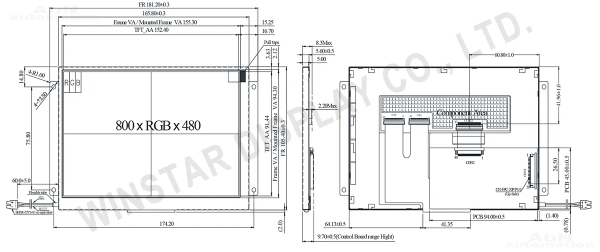 Тип: дисплей; Разрешение дисплея, px: 800*480; Тип дисплея: TFT; Температура эксплуатации, С: -20…70; Покрытие поверхности: антибликовое