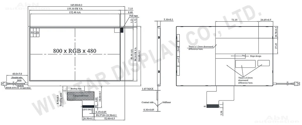 Тип: дисплей сверхширокий; Разрешение дисплея, px: 800*480; Тип дисплея: TFT; Температура эксплуатации, С: -30…80; Покрытие поверхности: антибликовое