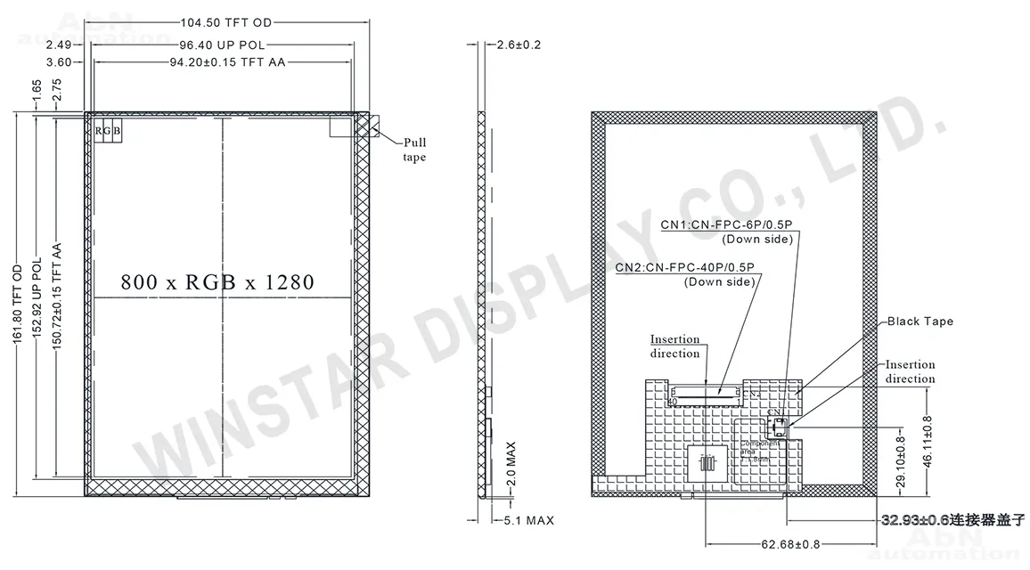 Тип: дисплей; Разрешение дисплея, px: 800*1280; Тип дисплея: TFT; Температура эксплуатации, С: -20…70; Покрытие поверхности: антибликовое