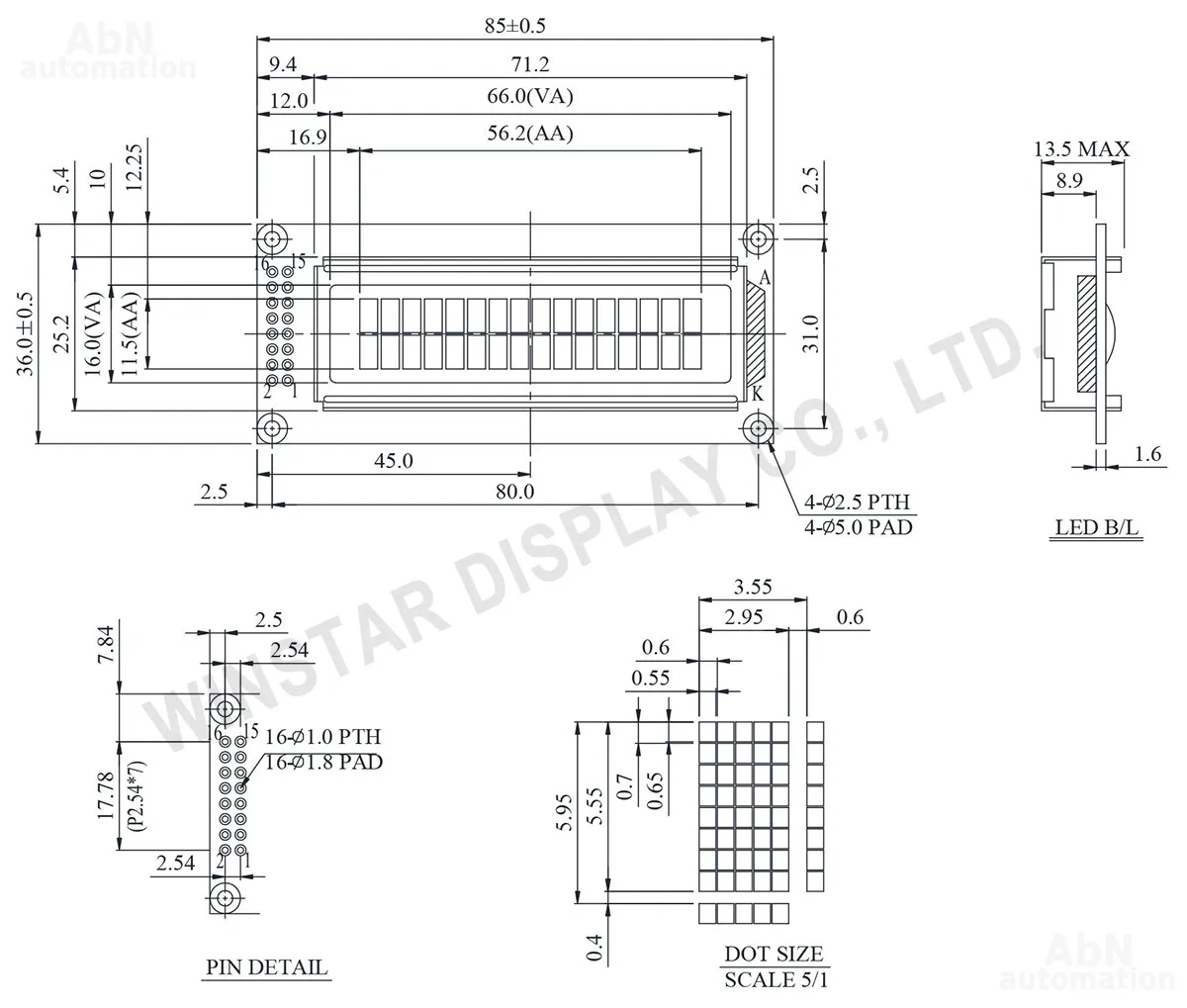 WH1602C дисплей LCD