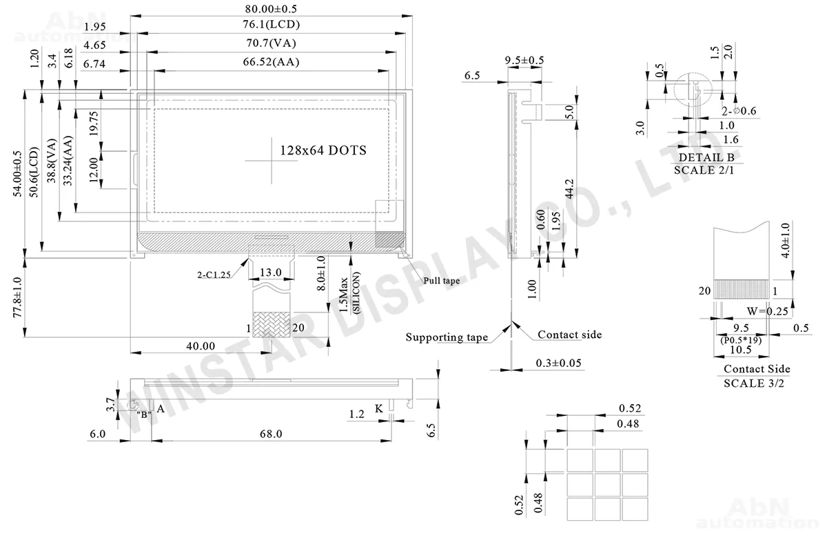 Тип: дисплей; Разрешение дисплея, px: 128*64; Тип дисплея: LCD; Температура эксплуатации, С: -20…70