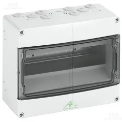 Тип: щит модульный; Монтаж: накладной; Материал корпуса: PC (поликарбонат); Количество модулей: 12; Степень защиты: IP65; Температура эксплуатации, С: -35…80