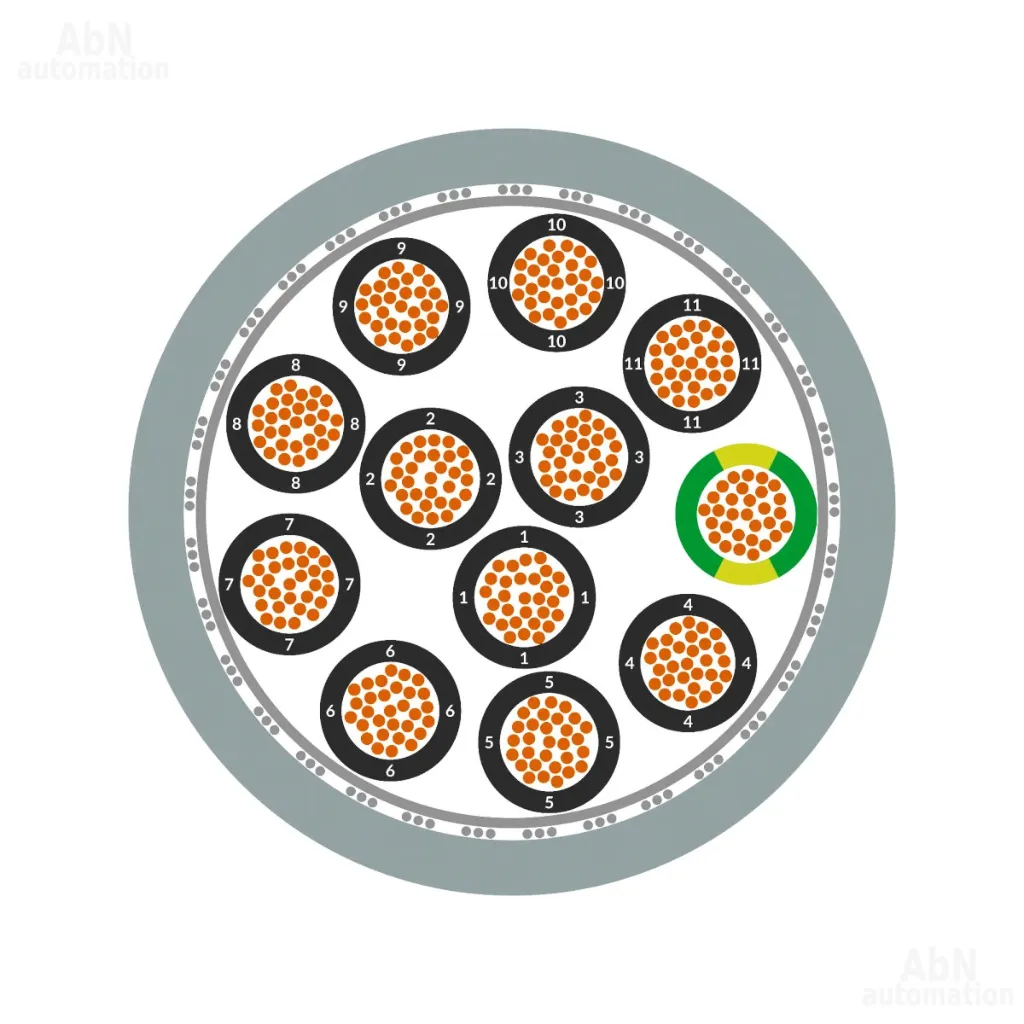 Тип: кабель силовой и управляющий; Номинальное напряжение, V: U0/U = 300/500 AC (IEC); Диаметр кабеля: 18,2; Номинальное напряжение изоляции, V: 600 AC (UL AWM); Количество жил: 25